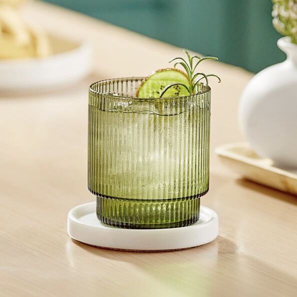 This glass is ideal for serving whiskey and other fine spirits neat, on the rocks, or in cocktails. Its sleek and modern design features subtle ribbed lines that are sure to catch the eye of your guests. The textured surface of the glass provides a tactile feel in your hand. This glass’s rich green color will add an enticing look to your tabletop displays!