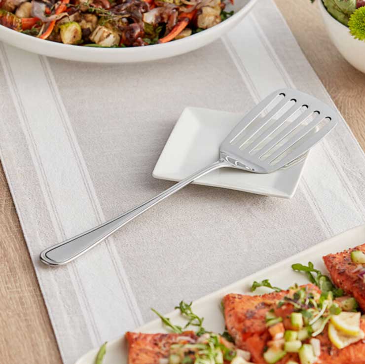 Designed for effortless serving, this 12.75″ Classic Slotted Turner is perfect for serving many buffet items, ensuring a smooth and consistent serving experience.