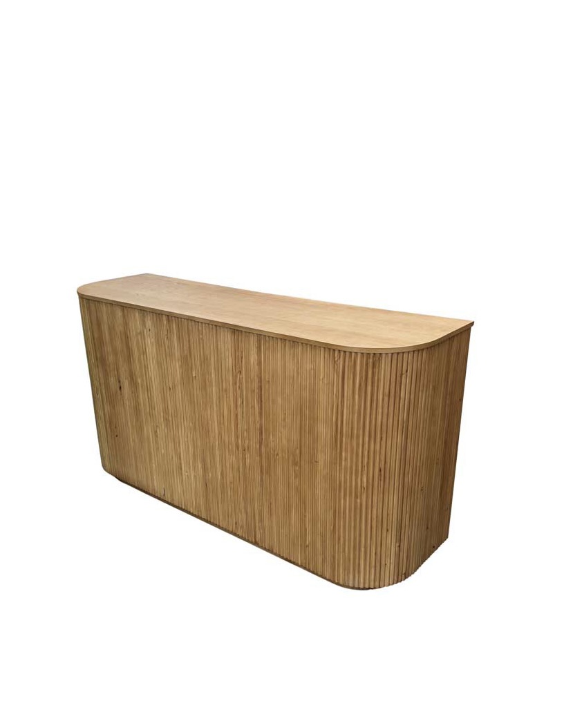 Create an unforgettable experience for your guests at your next party or event with the Blair Bar from RSVP Party Rentals and provide sleek contemporary look for your event. This bar has a modern appearance and features natural reeded sides and a natural wood top.