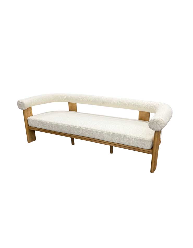 The Bond Teak Outdoor Sofa is a luxurious seating solution for a modern event. Upholstered in soft ivory fabric, this Sofa exudes comfort and sophistication. Its plush frame provides both comfort and support, making it perfect to lounge and relax. The stylish teak wood frame features clean lines and a timeless silhouette, making it a versatile addition to any party event decor style.