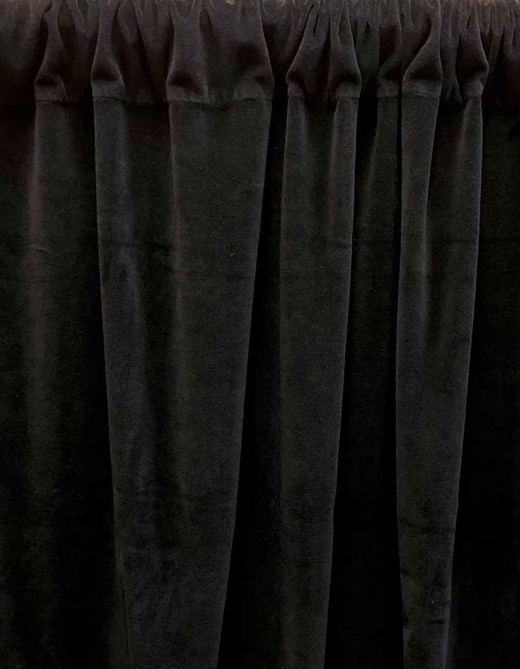 12'H X 4.5'W Black Velour Drape, 13'H X 4.5'W Black Velour Drape, 15'H X 5'W Camel Velour Drape, 8'H X 4.5'W Black Velour Drape