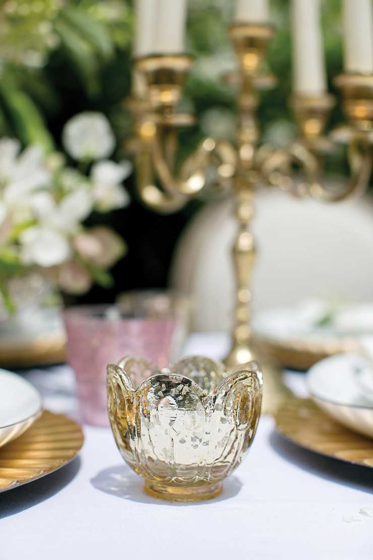 Illuminate your event space with the subtle glow from our Empire Gold Votive. Its petite design, paired with a mesmerizing gold hue, ensures a warm, inviting ambiance, making it an essential tabletop addition for any elegant occasion.