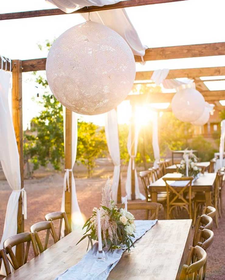 Consider hanging a chandelier or even lighting with our bistro lights.
