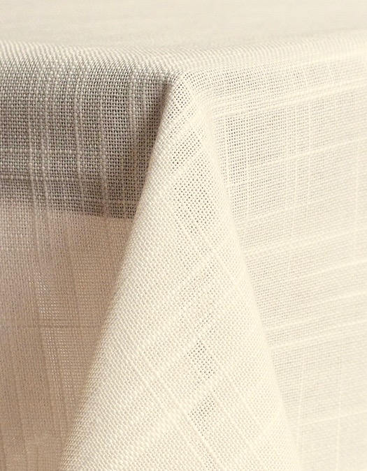 From elegant to casual, the natural and rustic Ivory Belize linen tablecloth, napkin, and table runner adds an eye-catching texture and sense of simplicity to every event. The stylishly textured Belize tablecloths are medium weight and hold a beautiful drape. The dramatic contrast adds a glamorous accent as a table runner and the soft cotton feel makes it an excellent napkin. The naturally look and weight make them the perfect choice for either indoor or outdoor events.