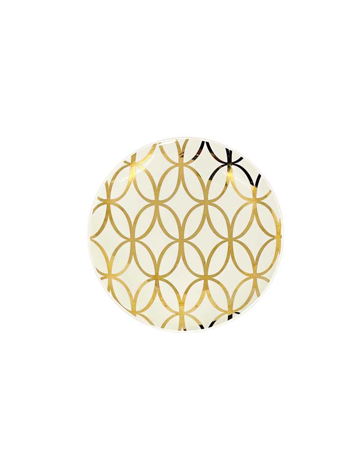 Elevate the dining experience at your Las Vegas event with our Jackie Gold Coupe 7.5″ Plate. Perfect for serving salads or desserts, its exquisite gold pattern design adds a touch of luxury, making every bite memorable. To find styling inspiration, check out our Rent the Look and Inspiration pages.