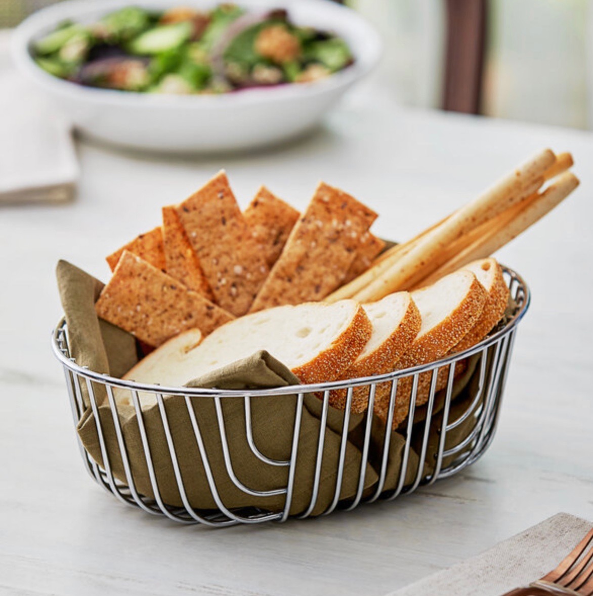 The Luxe Chrome Bread Basket offers a sleek and modern way to serve bread, rolls, or fresh pastries at any catering event, buffet, or formal dining setup. Designed with a durable chrome-finished metal frame, this 10″ x 7″ open-wire basket ensures proper airflow to keep baked goods fresh while adding a contemporary touch to table settings.