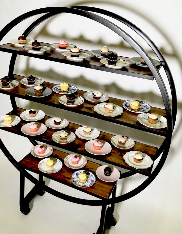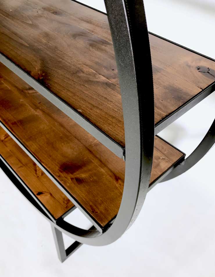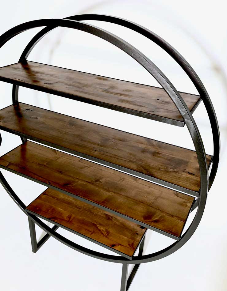 The Midtown Round Shelf from RSVP Party Rentals is a full-sized round shelf that is 77″ H x 60″ W. Made from natural wood and metal, this piece of rustic beauty is sure to add that final touch to your event or party. It has four shelves each with a clearance of 12” between each shelf, making it perfect behind the Midtown Bar for placing liquors, spirits or for desserts for your guests.