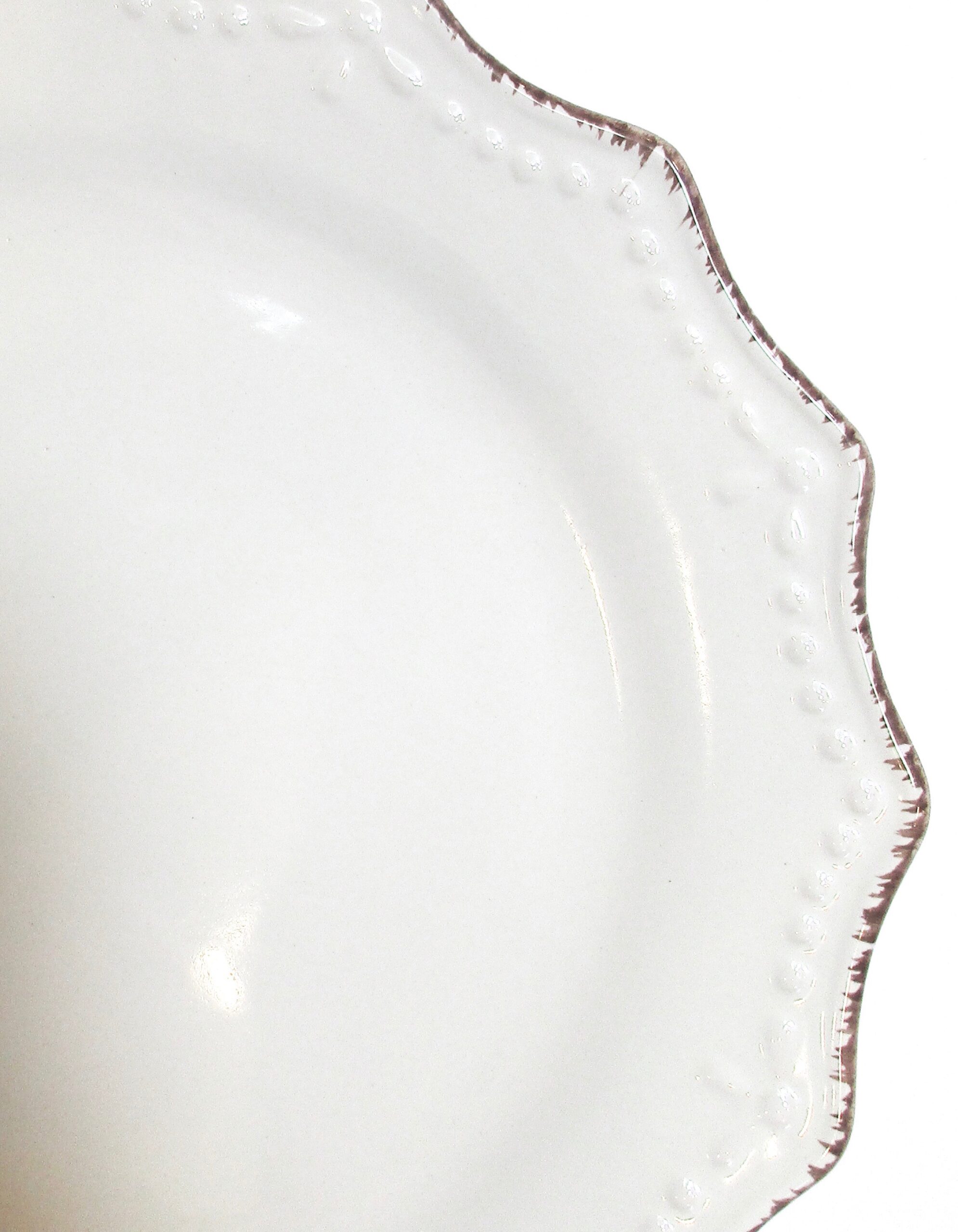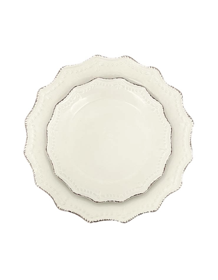 Ideal for pairing with our Napa, Vintage, or Whitewash tables, the Oxford Cream China adds warmth and character to both formal and casual gatherings. The textured finish and scalloped edges create an inviting, handcrafted look that enhances the beauty of any decor theme, from rustic chic to country elegance.