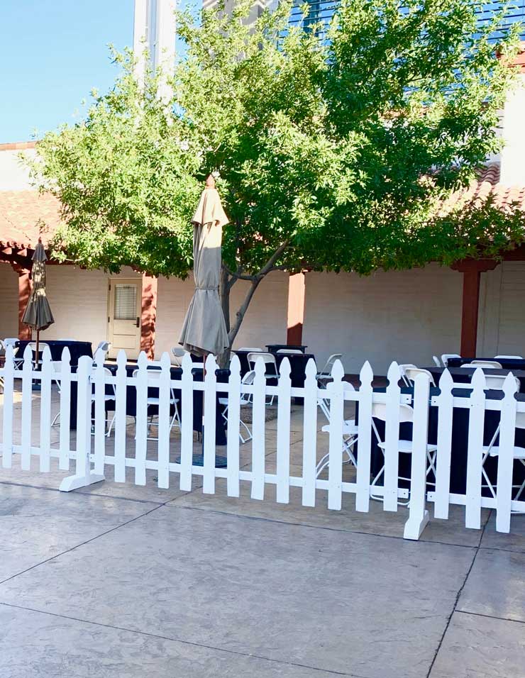 Our Picket Fence sections add charm and elegance to any event. Each section measures 3.5′ tall x 8′ long, creating a quaint boundary or divider for your outdoor events. The fence stands, available separately, ensure stability and easy setup.