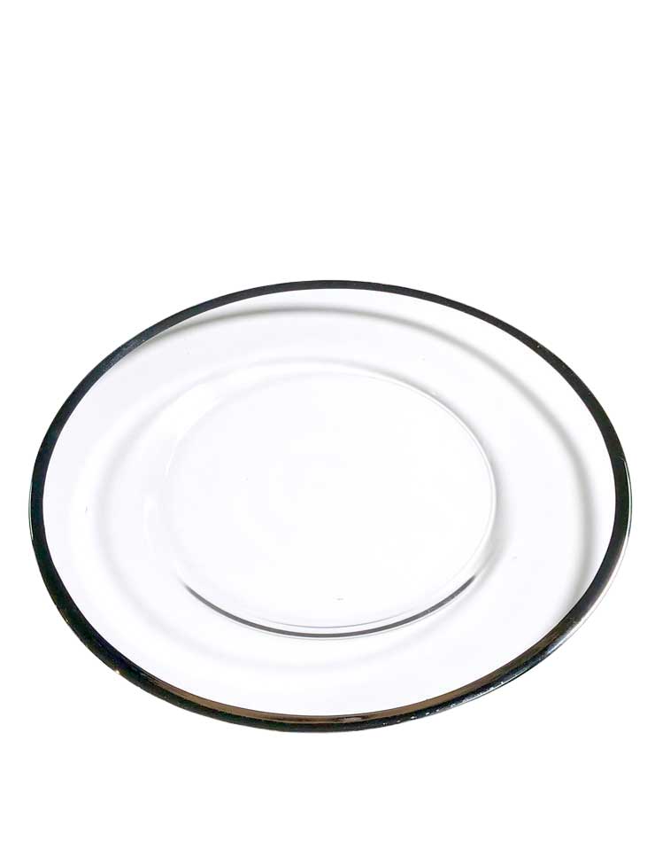 Our Platinum Eclipse Charger serves as the perfect canvas for your culinary creations. Crafted from clear glass, it showcases a stylish platinum rim that adds an elegant edge to your table setting. This charger marries simplicity and sophistication, casting a spell of charm over your event.