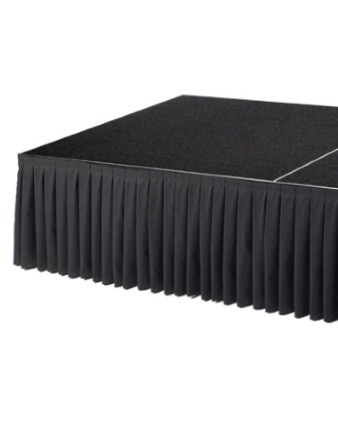 To determine the number of skirts needed, first measure the linear footage necessary to go around 3 or 4 sides of your stage then rent the number of 16′ pieces required.