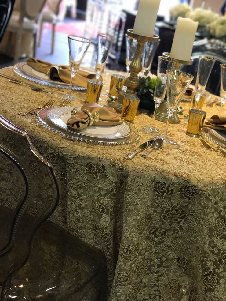 Gold Valentina - Round, Tablecloth, 120"$55.00