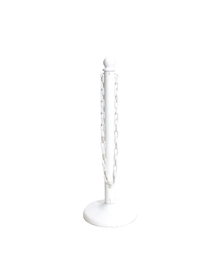 Stanchion only, With 5' of White Plastic Chain