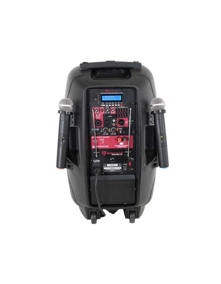 Party off the grid with onboard battery power Want to go off the beaten path and rock out where there is no AC power? How about jazzing up your next party in the park? Armed with a built in battery, Rockville portable PA was built to hit the road. Depending on volume levels with a full charge, the unit will run for up to eight hours, so you never have to worry about running out of juice in the middle of a song. And if eight hours aren’t enough you can easily add additional external 12V batteries and keep running and running and running all day and night!