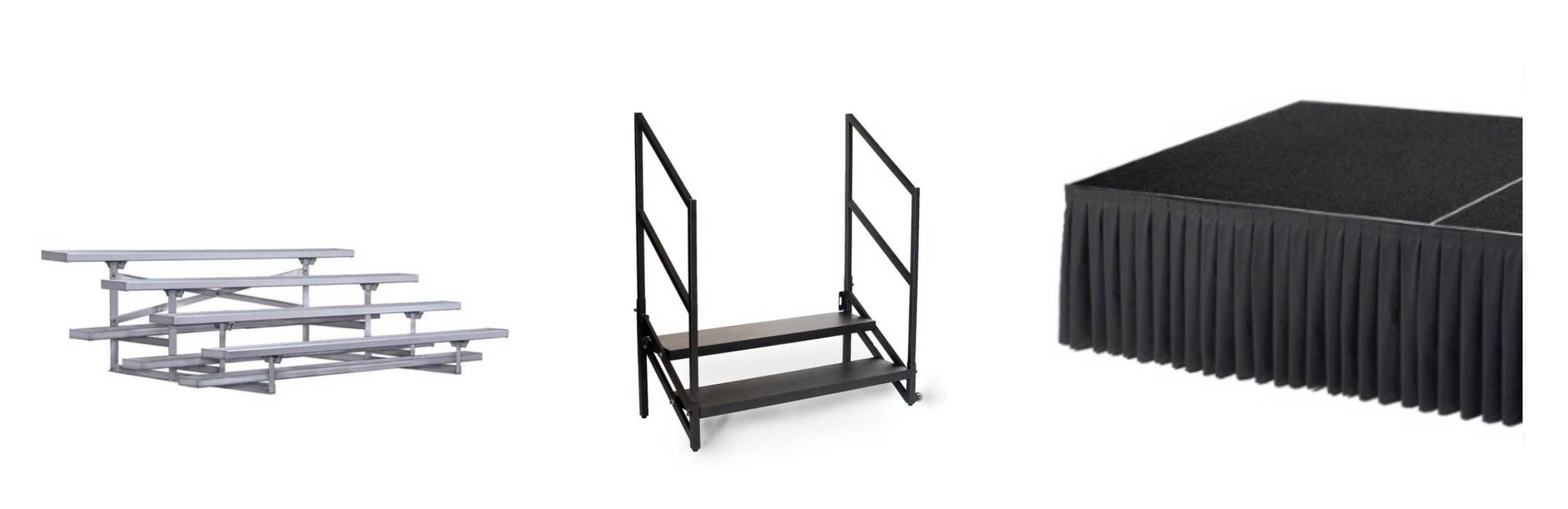 Set the stage for a memorable event with our Stage & Bleachers rental at RSVP Party Rentals in Las Vegas. Our modular stages can be configured to suit any event size, and our comfortable bleachers ensure all guests have the best view. We also offer stage accessories like stairs and skirting for a complete, professional look.