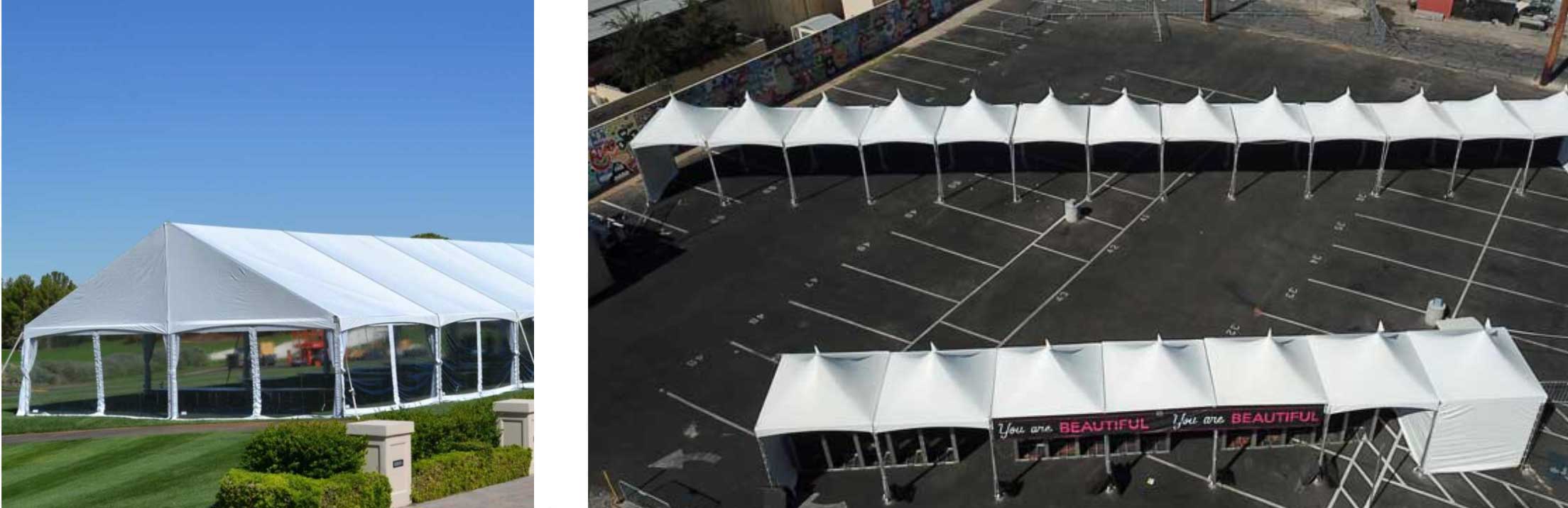 Our Clear Structured Tents and White Structured Tents are more semi permanent installations and can remain up for months at a time. These tents are a fast, economical solution for convention centers, exhibit halls, large public fairs, concert venues, trade shows and more. These clear span tent structures offer a unique design that provides ample height and extraordinary clearance. There are no internal columns to interfere with exhibits, stages or viewing areas.